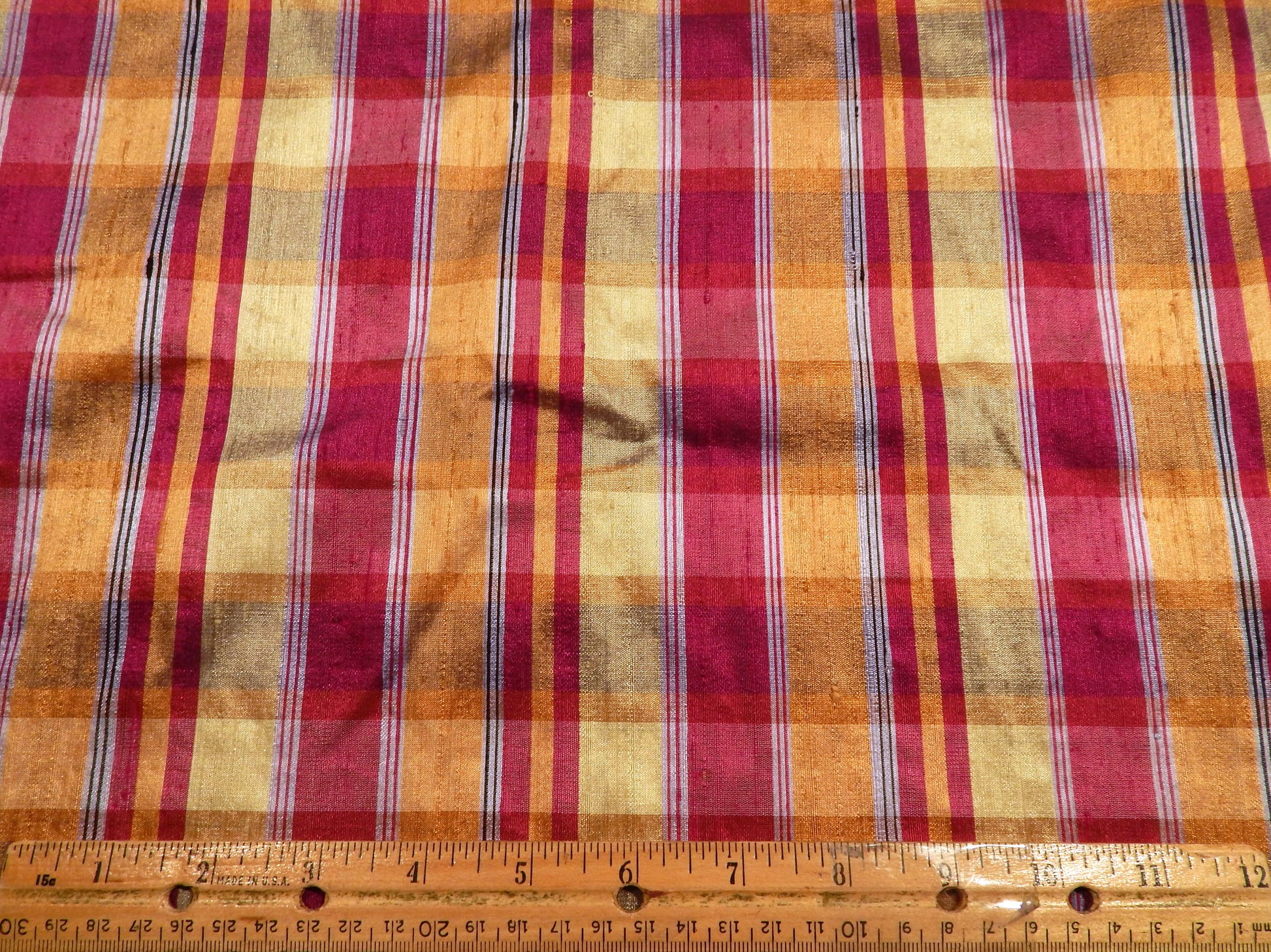 Berry, Gold, & Blue Plaid Silk Dupioni