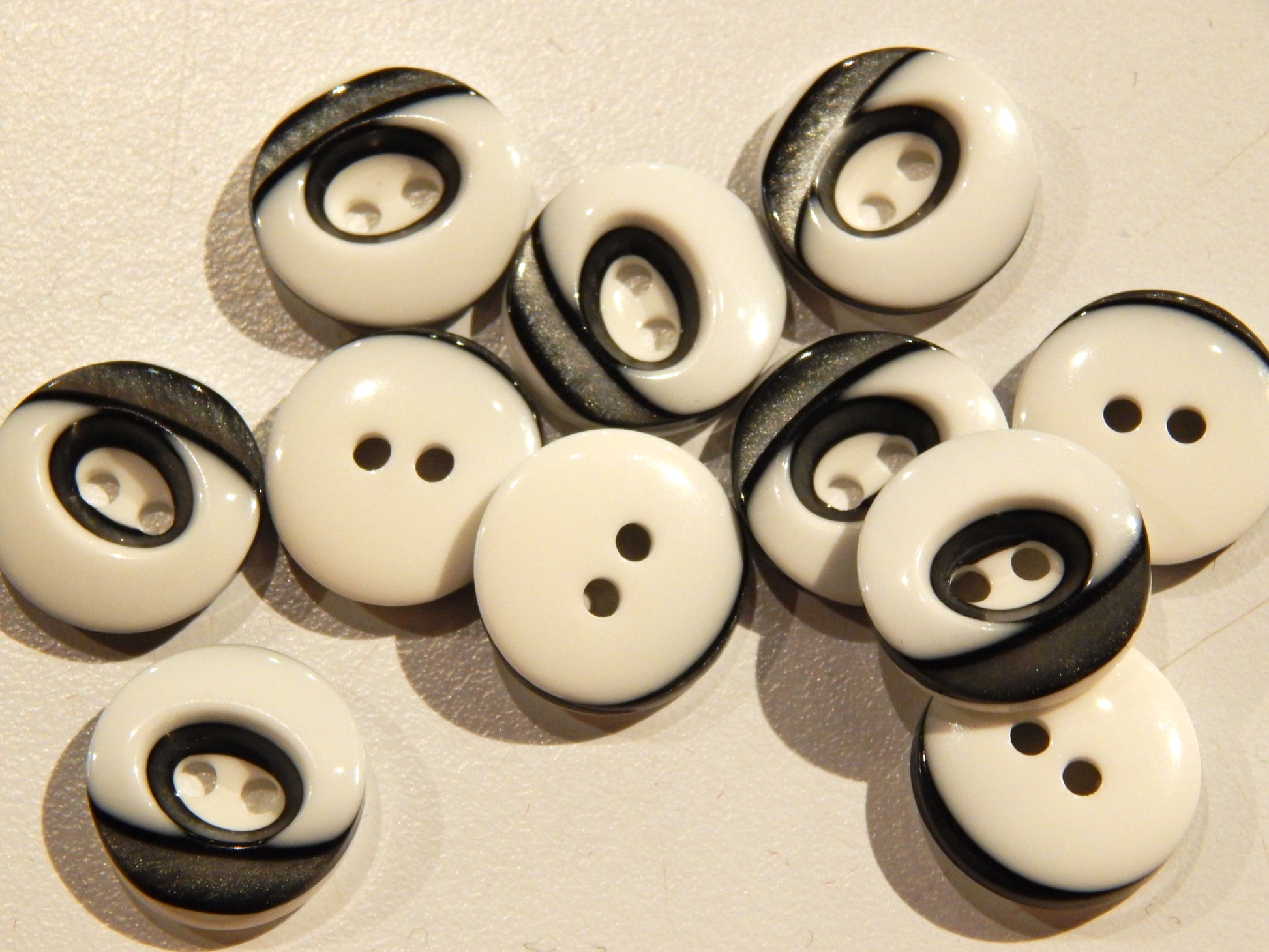 Black and White Asymmetrically Ringed Buttons - Multiple Sizes