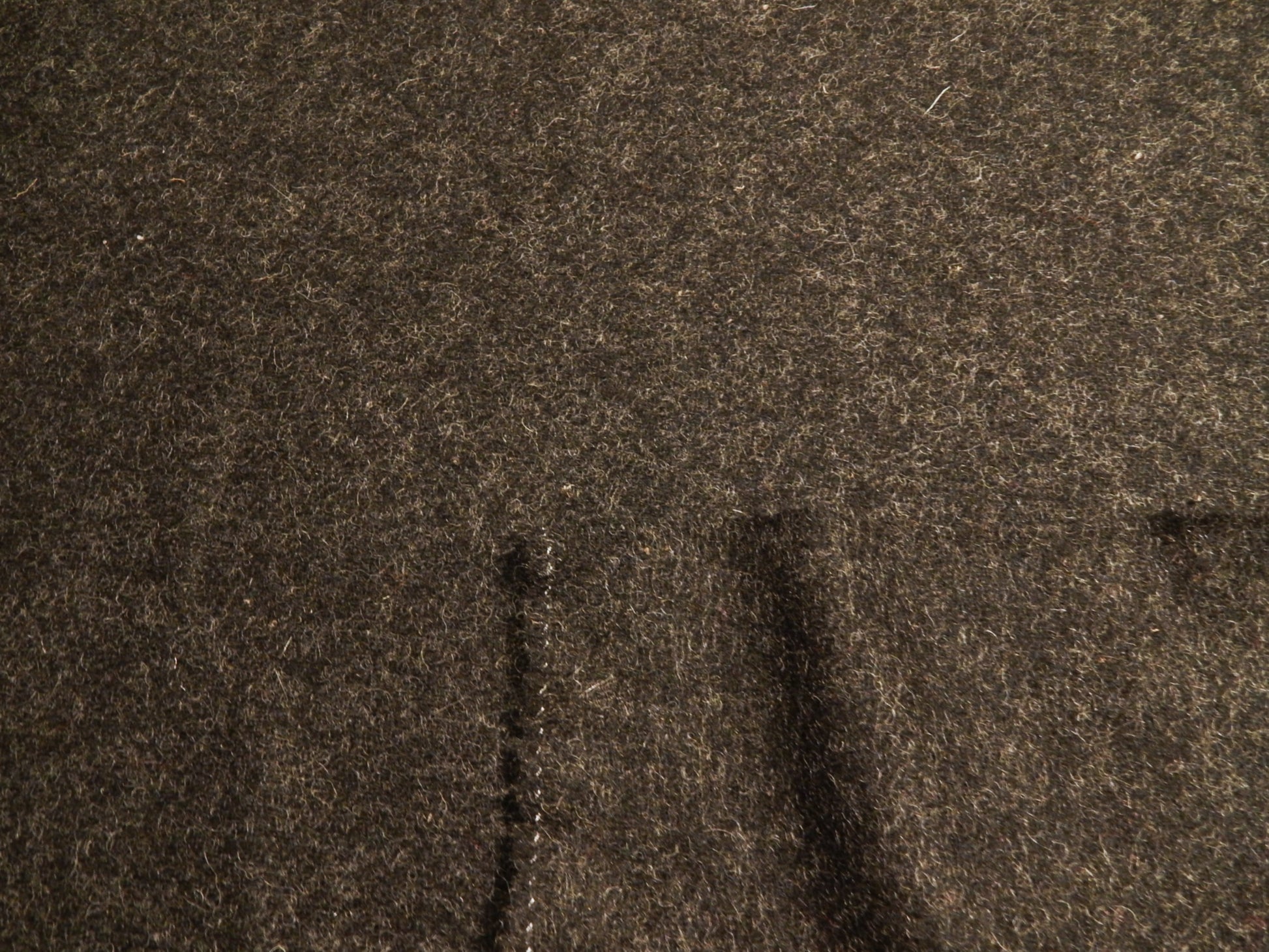 This Charcoal Fuzz Wool Melton is so cozy and classic. This type of fabric is naturally weatherproof and very very warm! After this fabric was woven, it was abraded so that the outer fibers mat together to create a dense barrier that repels rain and also doesn't fray! It is thick and holds it's shape well to create nice collars, plackets, and cuffs! This wool fabric is perfect for your next winter coat, western style vest, or hat!