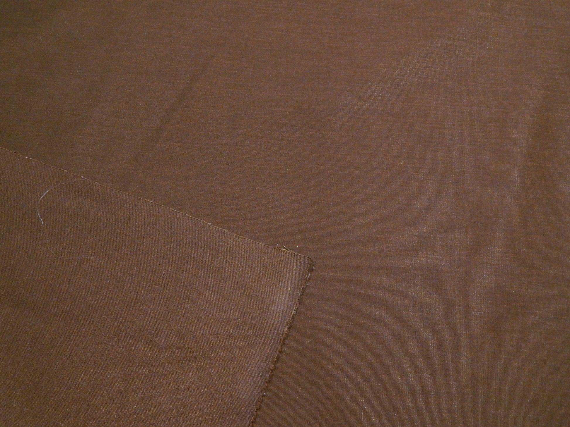 This lightweight and crisp Dark Brown Lexington Poplin has been treated with a crease resistant and stain resistant finished. It is lightweight, but not see through, and will not wrinkle easily. This is the fabric Franciscan nuns use for their habits. This fabric holds it's shape well, lending itself well to cuffs and collars. This neutral color is great for layering and for kids clothing.