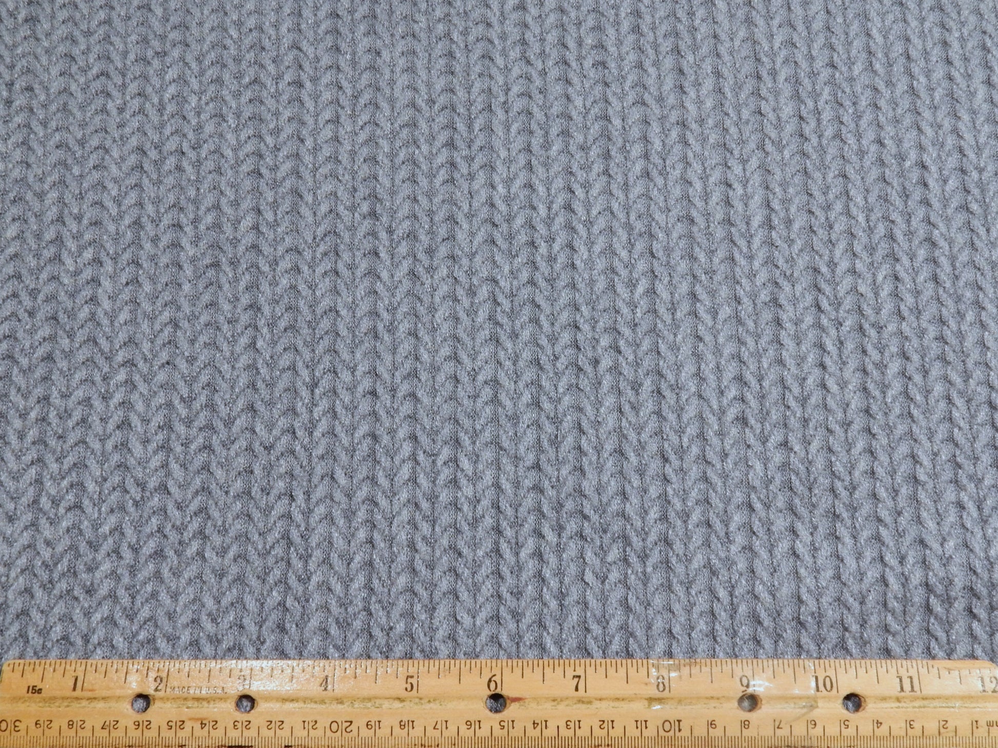 This super textured and very warm Denim Blue Scotland Chunky Sweater Knit fabric is perfect for your cozy winter wardrobe! The front side has the texture of a knitted sweater, and the backside is much smoother. This fabric has the look of a hand knitted sweater, but is much more abrasion resistant - and machine washable! Use this to make a cardigan, sweater, or even a beanie!