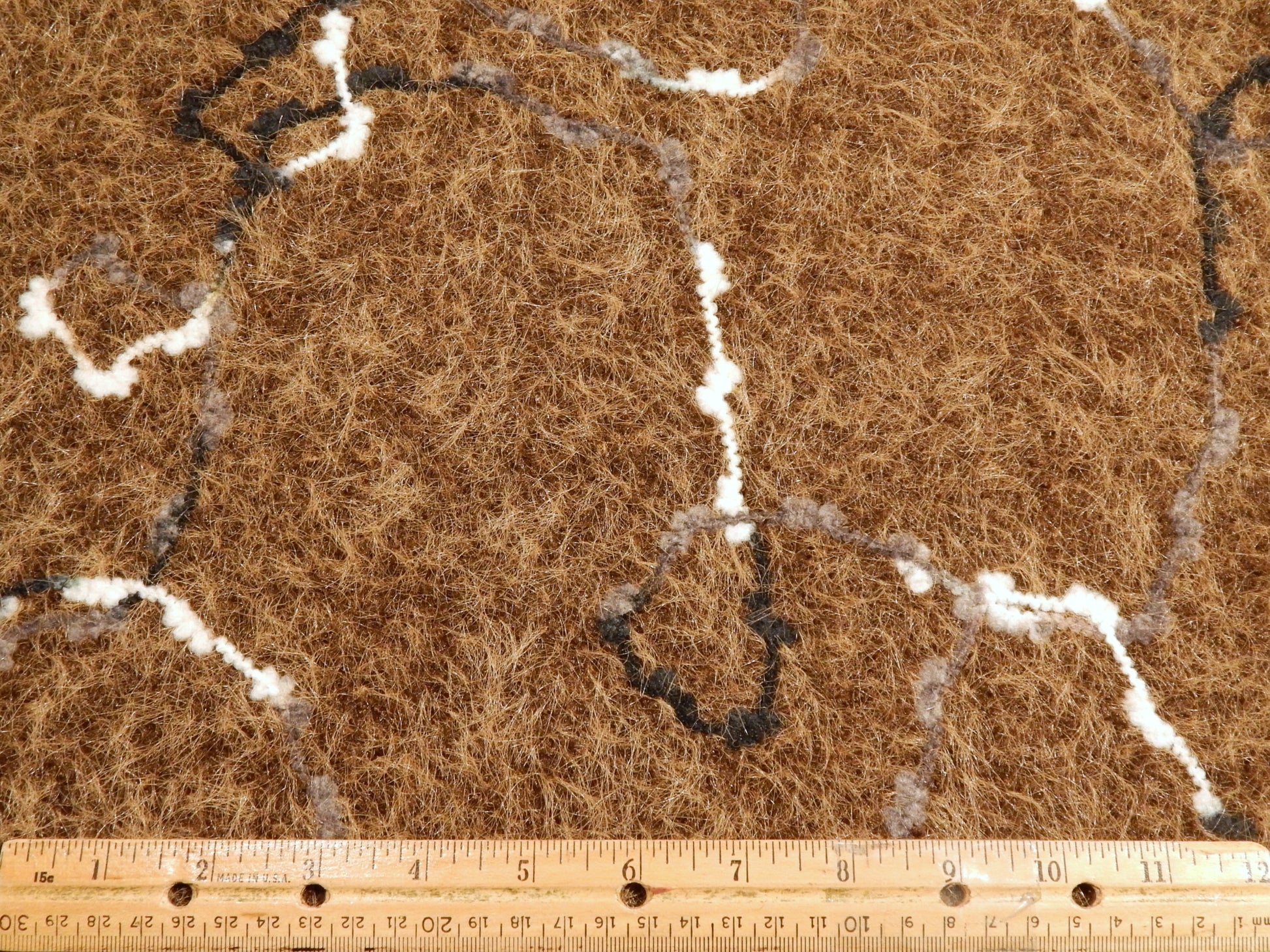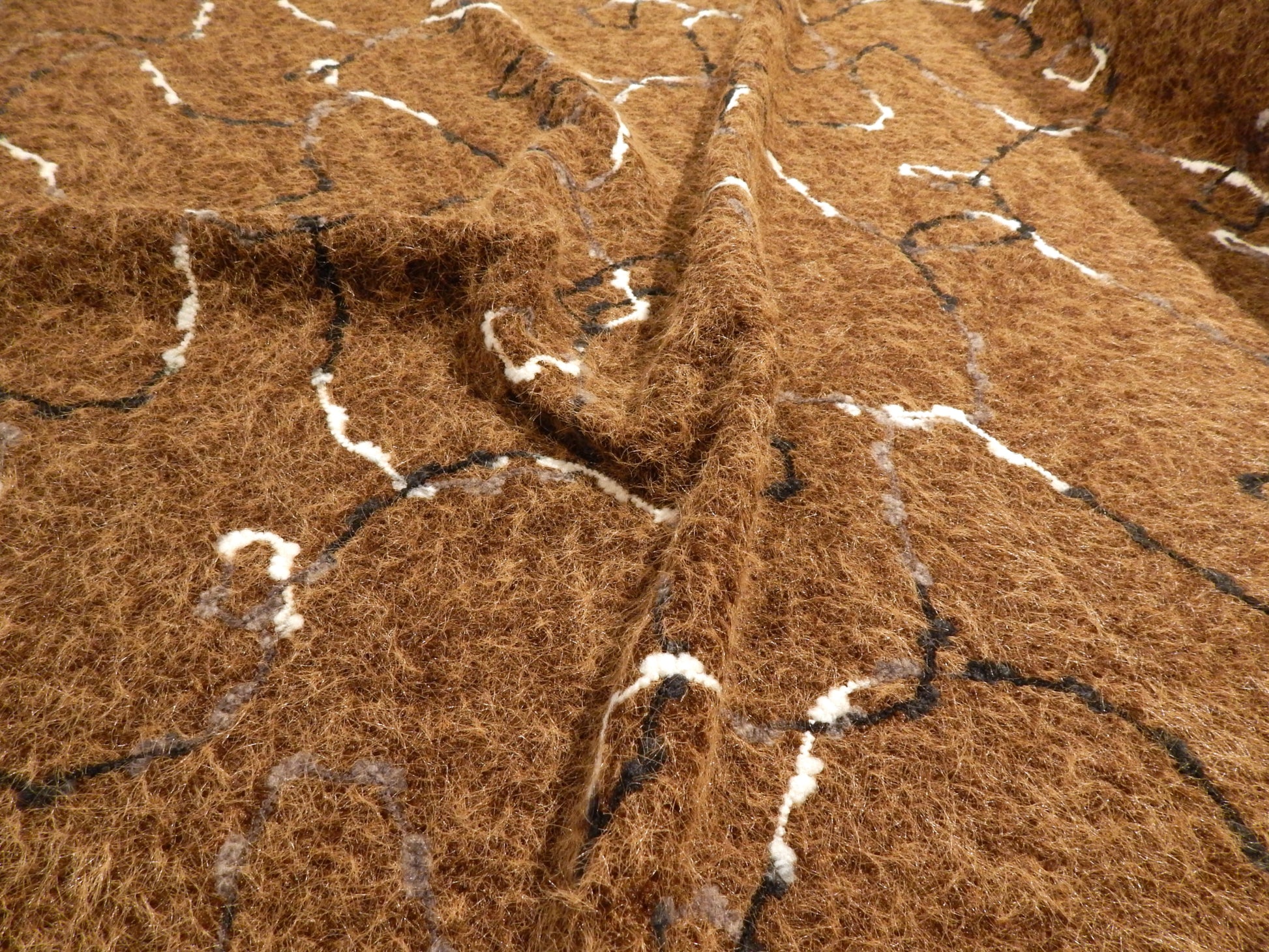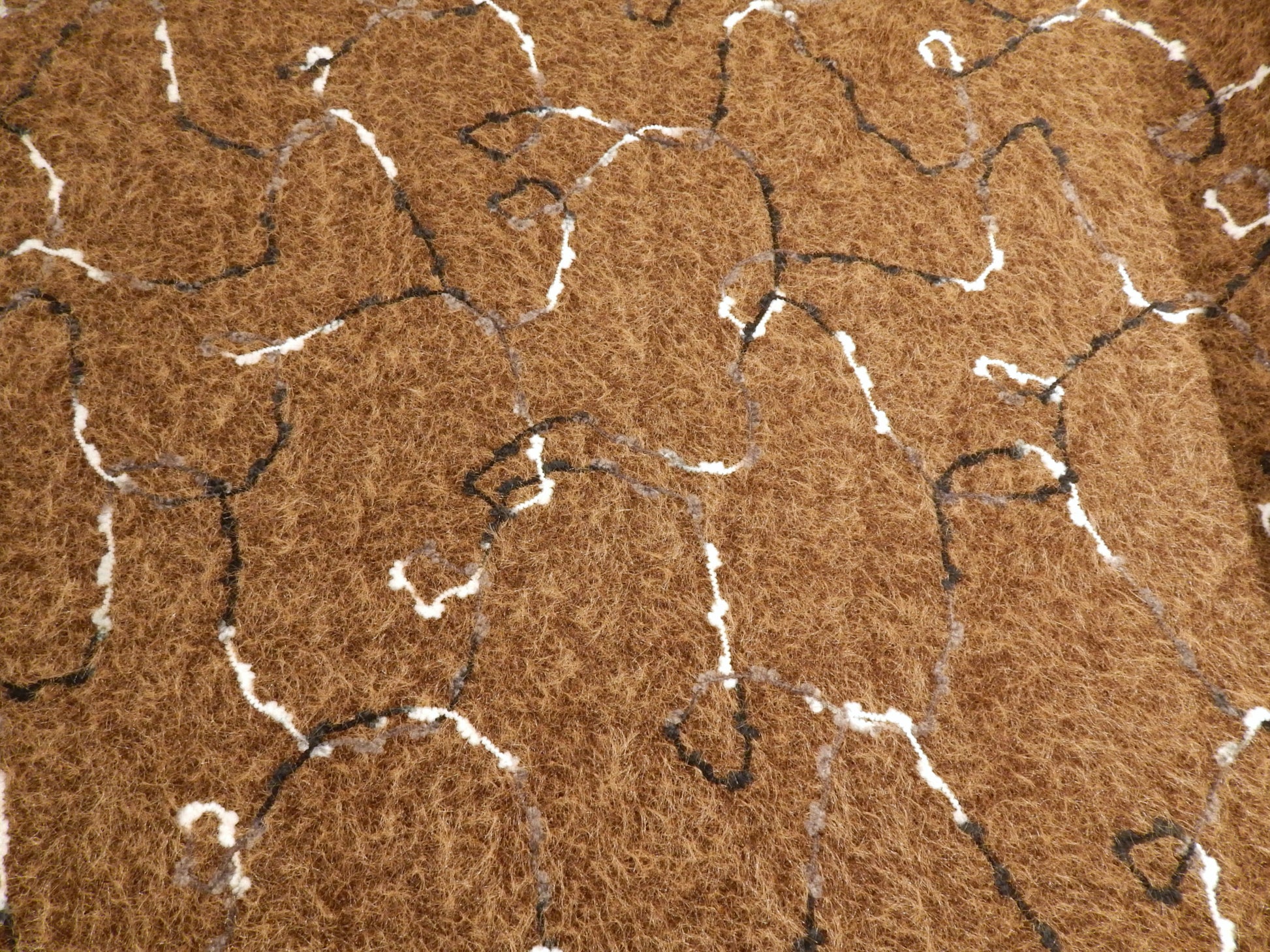 This super unique Fuzzy Hot Chocolate Sketched Yarn Knit is made to look just like a needle felted sweater! There is yarn curving and swirling all over the surface creating a unique and artsy design. This fabric is also super fuzzy like a cashmere sweater, and just as soft! It is 100% polyester so totally machine washable and kid safe. It is a 2-way stretch fabric that would make a great long duster, everyday cardigan, or winter skirt!