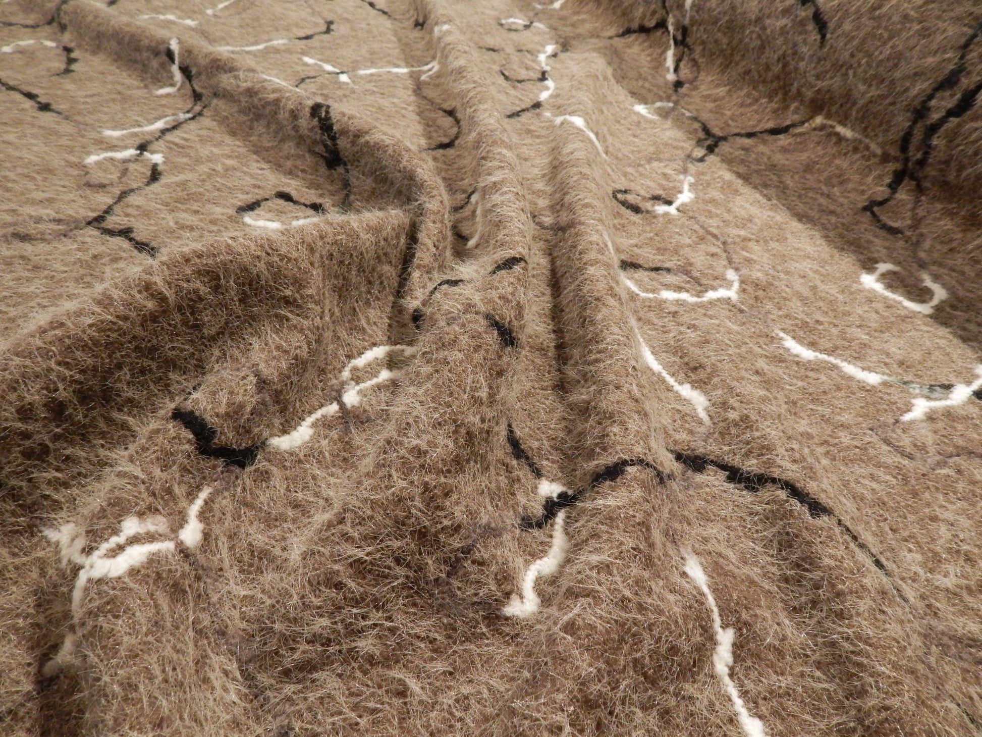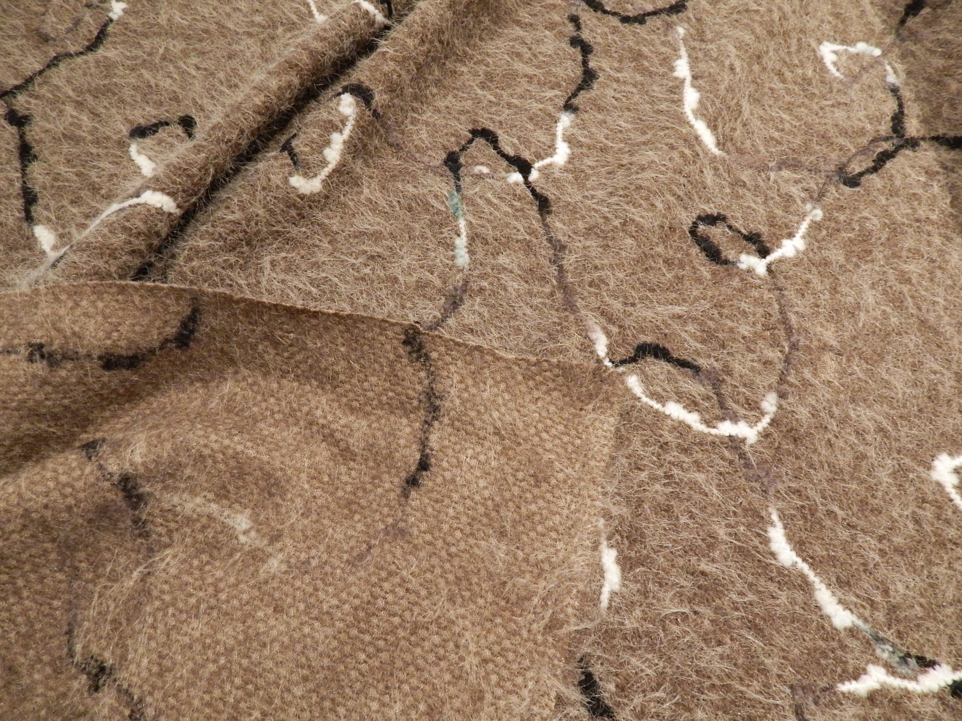 This super unique Fuzzy Taupe Sketched Yarn Knit is made to look just like a needle felted sweater! There is yarn curving and swirling all over the surface creating a unique and artsy design. This fabric is also super fuzzy like a cashmere sweater, and just as soft! It is 100% polyester so totally machine washable and kid safe. It is a 2-way stretch fabric that would make a great long duster, everyday cardigan, or winter skirt!