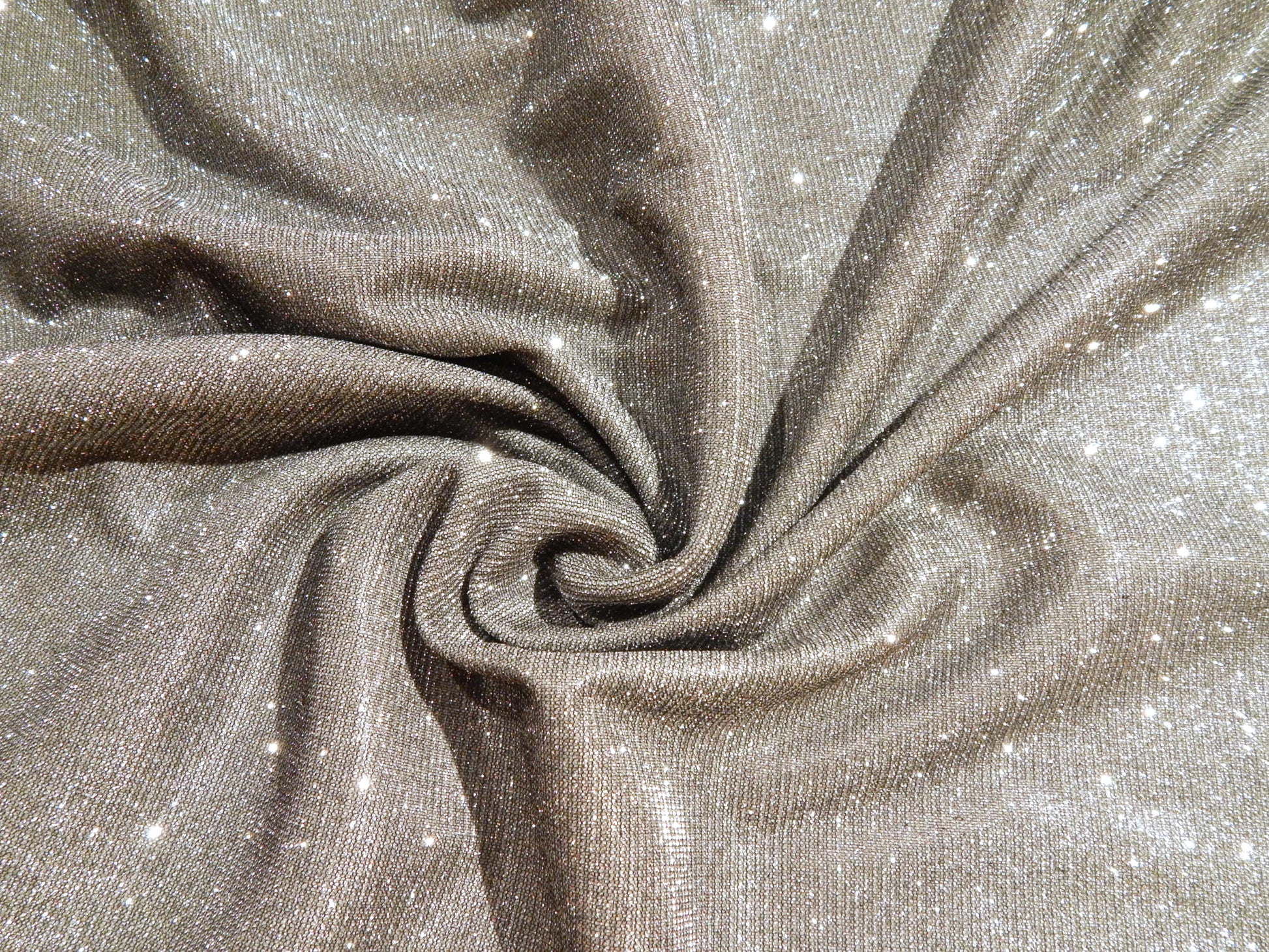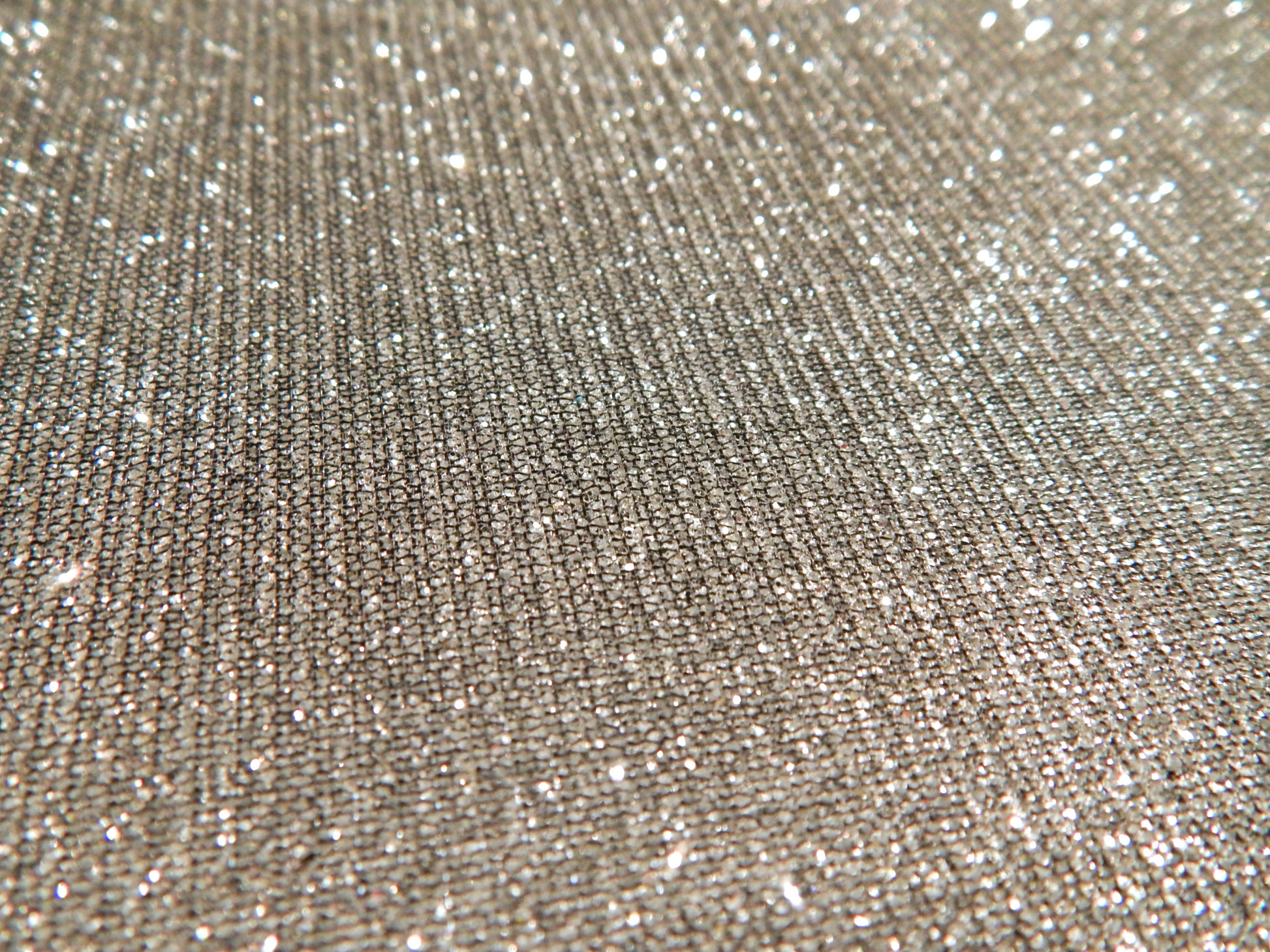 This gorgeous Metallic Silver Sparkle Knit is glittery, stretchy, flashy, and absolutely begging to be your next formal gown. This fabric is flecked with metallic silver bits that help it to just shine as it hits the light. It has a 2-way stretch and drapes very well. It is a lighter weight knit and while a dress skirt would be just fine with one layer, a bodice may want another layer of fabric as an understructure. There are no beads or sequins on this fabric making it easier to sew with, however it does tend to share it's sparkles. Use this for a going out birthday dress, prom dress, or Halloween costume!