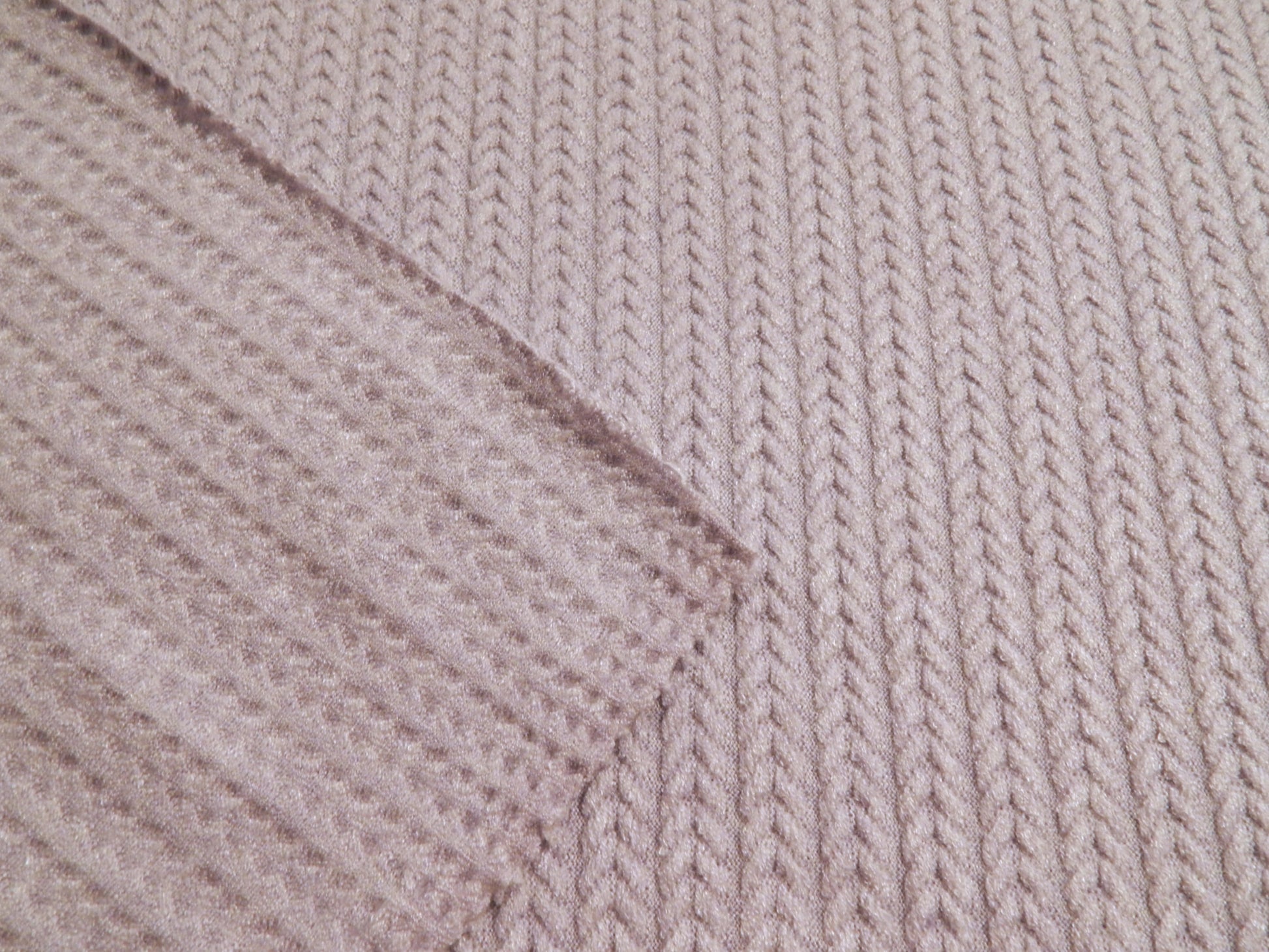 This super textured and very warm Muted Lilac Scotland Chunky Sweater Knit fabric is perfect for your cozy winter wardrobe! The front side has the texture of a knitted sweater, and the backside is much smoother. This fabric has the look of a hand knitted sweater, but is much more abrasion resistant - and machine washable! Use this to make a cardigan, sweater, or even a beanie!