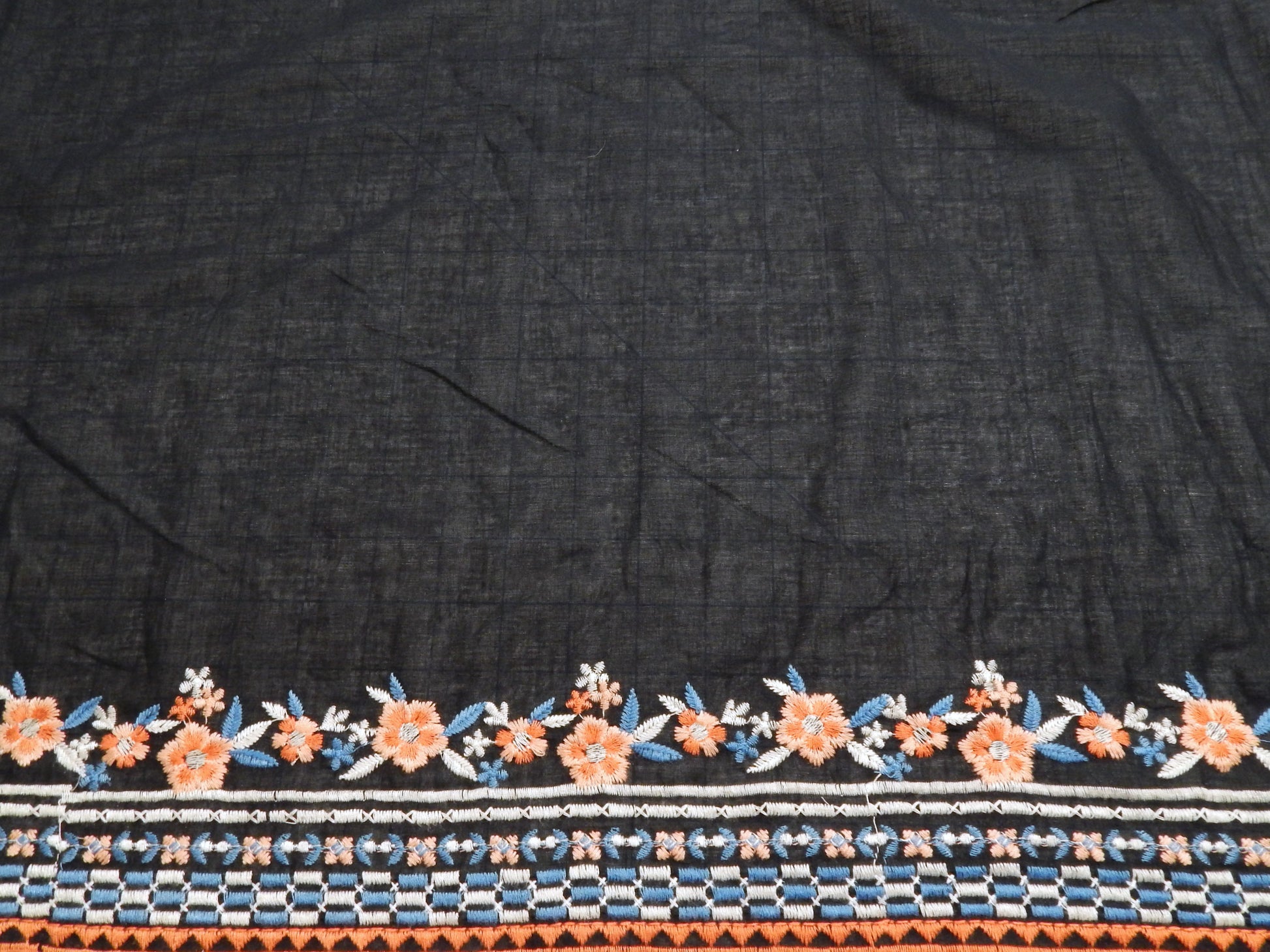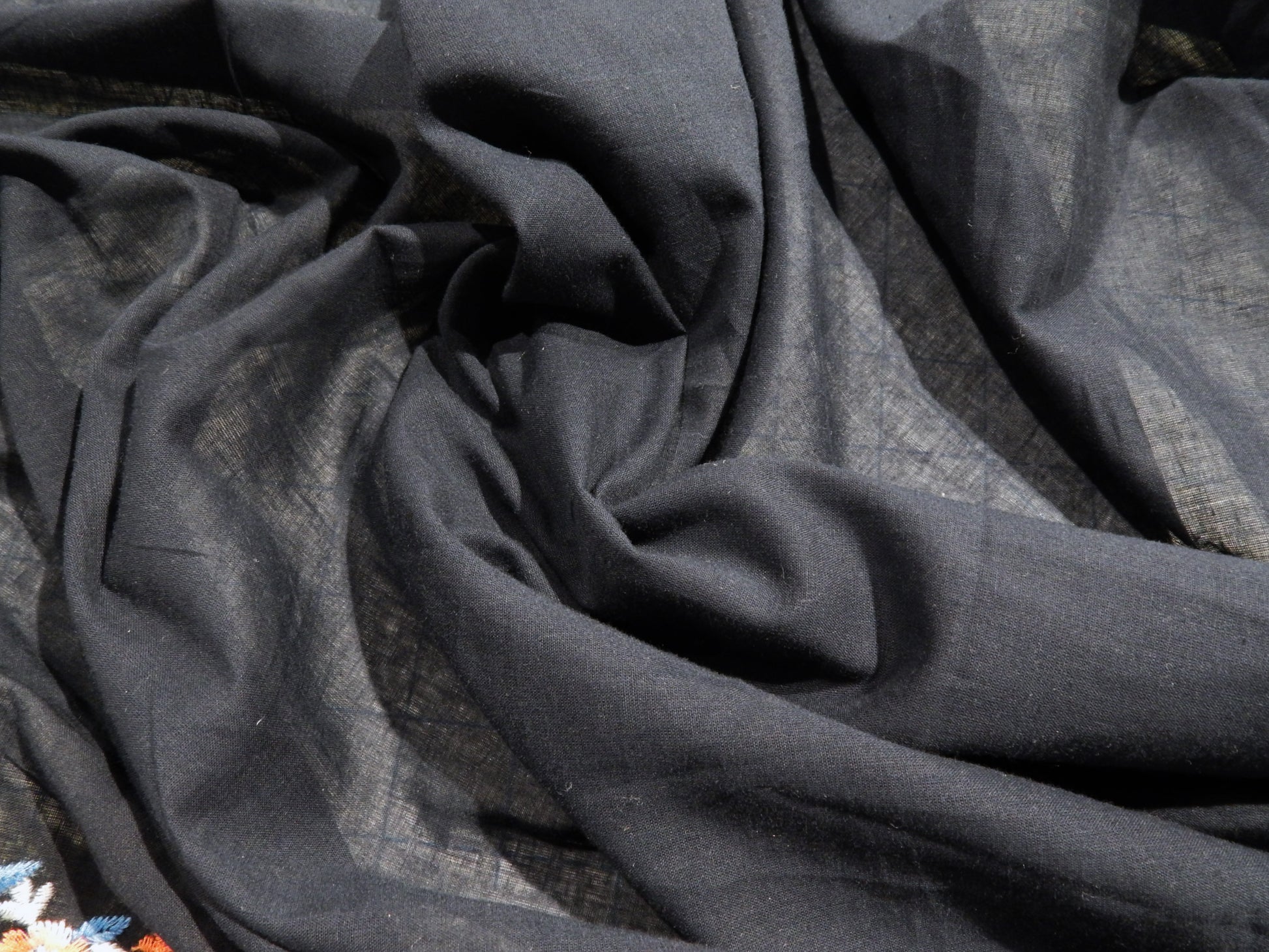 This Navy and Coral Embroidered Floral Scalloped Cotton Lawn fabric is classic, feminine, and so sweet. The cotton is soft, super lightweight, and has an easy drape! This double bordered, embroidered, floral strip runs across both selvages and adds contrast and elevates the fabric from everyday to something a little more special. The fabric semi see through because of the fineness of the weave, so some garments may need to be lined. This would make a great child's dress, summer blouse, or sun dress!