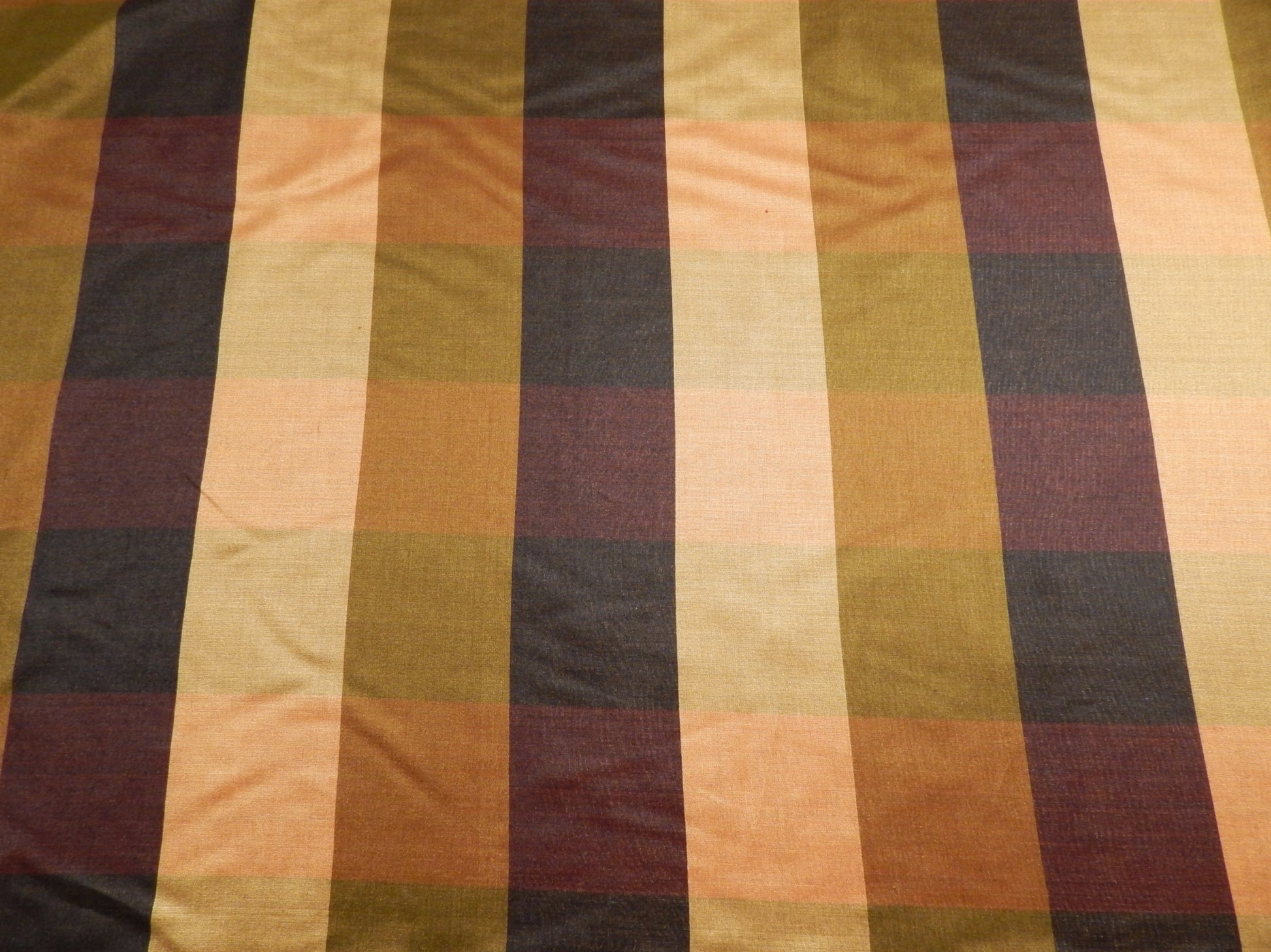 Olive, Burgundy, & Peach Silk Finish Cotton Plaid