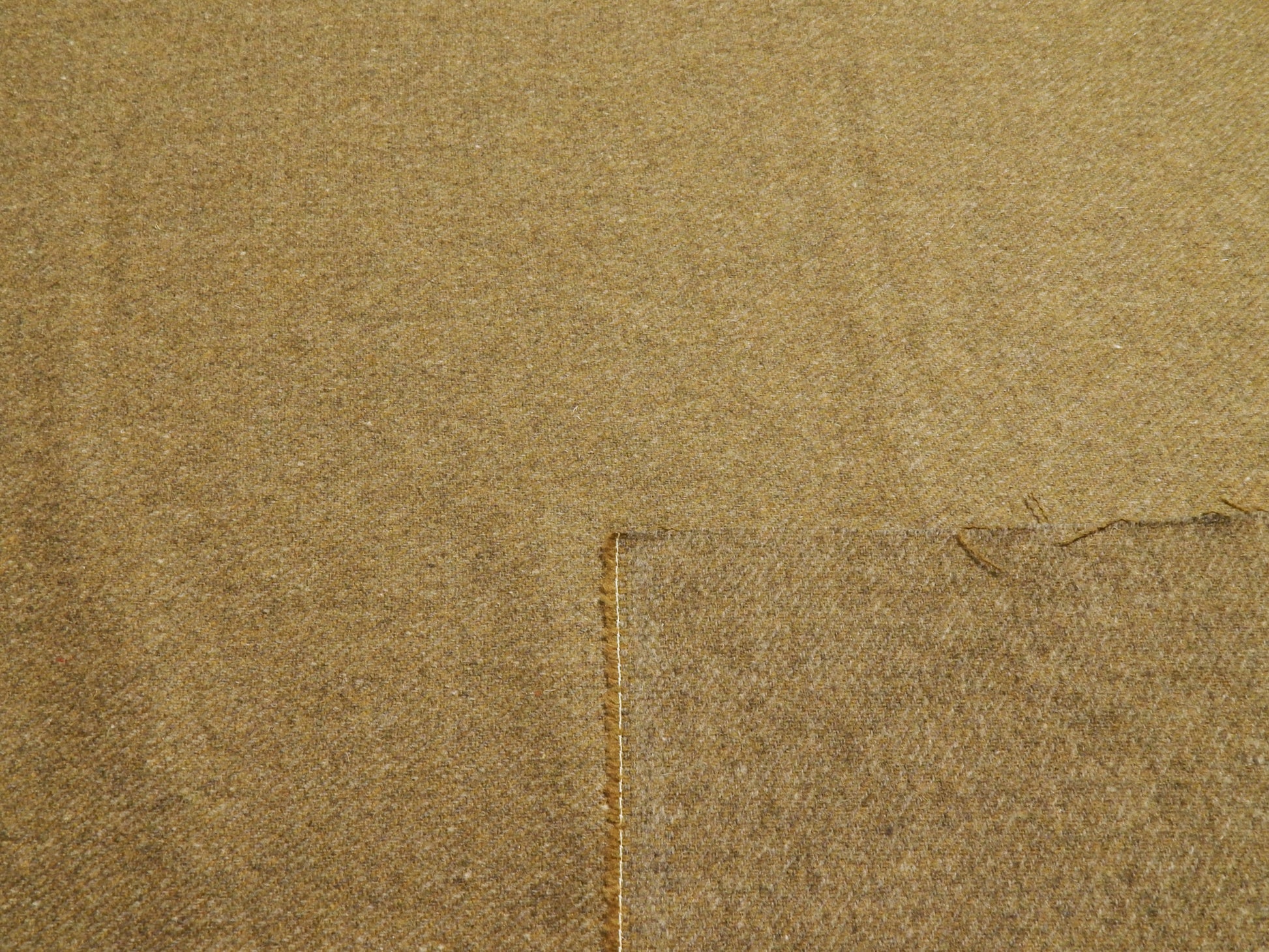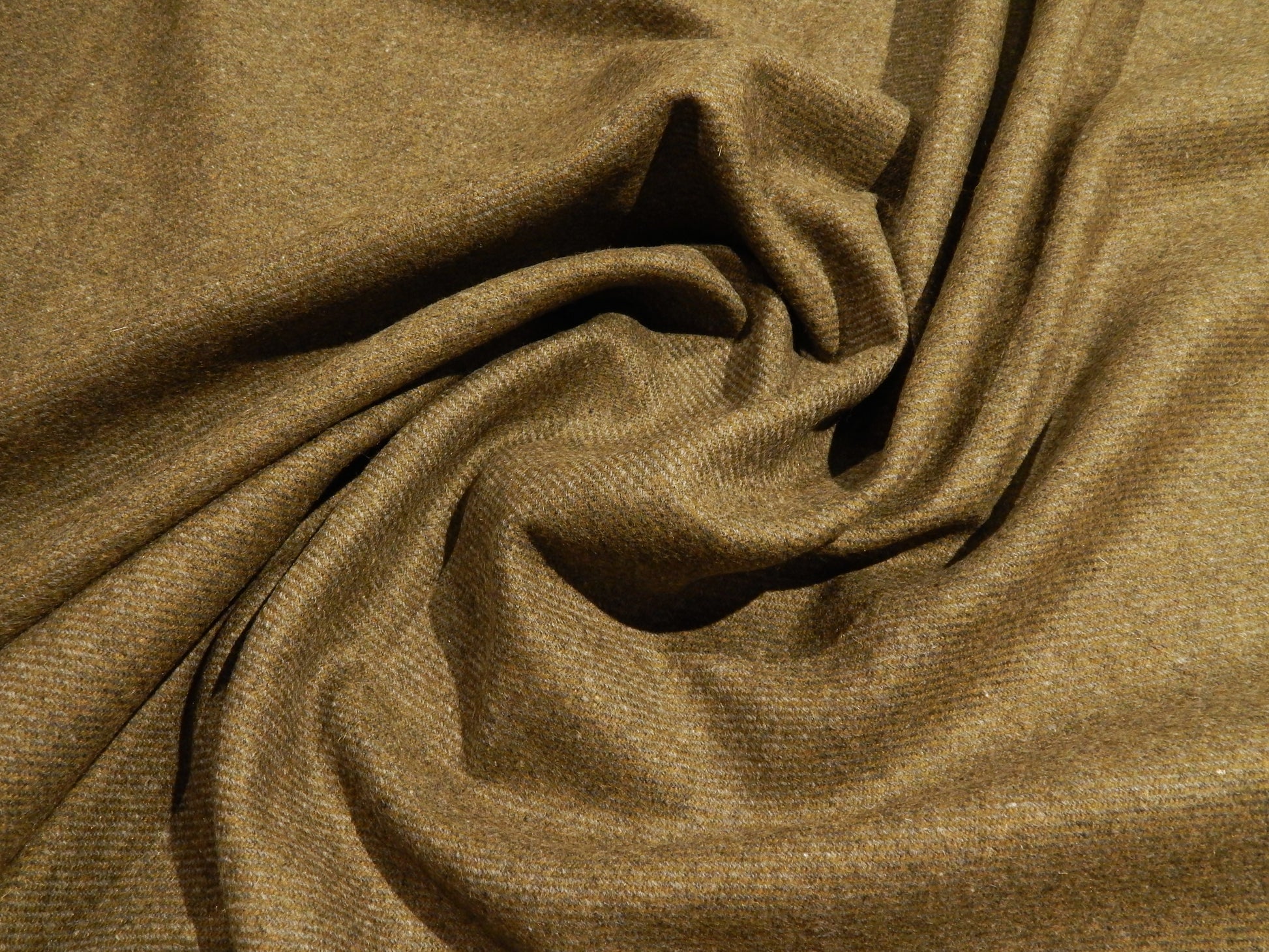 This Olive & Grey Chinese Wool Coating is superbly soft and has a wonderful drape for being so thick. The twill weave also creates a beautiful two-tone striping effect that gives the color even more depth. This is a wool and polyester blend that when burned seemed about 50/50. This would make an excellent coat, winter mini, and beret matching set!