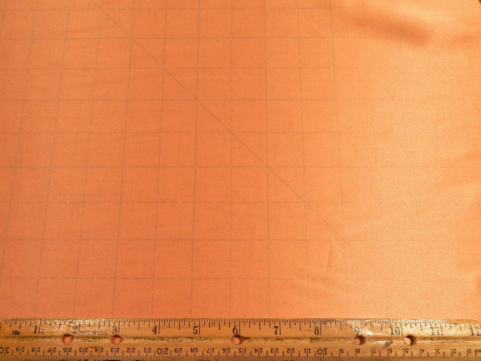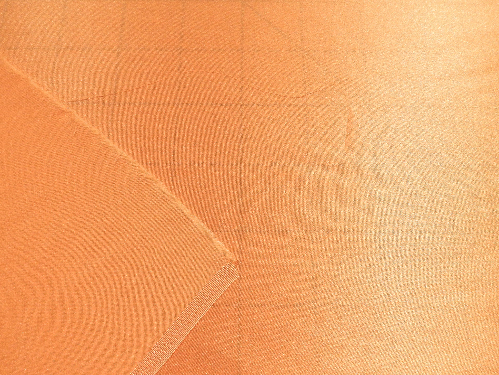 This Peach Silk Charmeuse is a light and cheerful color of orangey pink. It is incredibly soft and has a wonderful shine to it. It will make a beautiful mother of the bride dress, lingerie set, or even pillow cases. It is lightweight and drapey, and the front side has a glossy sheen to it. This charmeuse is very fluid and has a very soft hand to it.