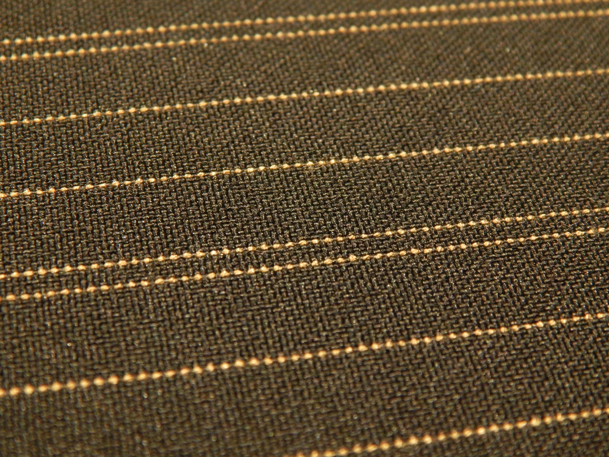 This Pine Green & Beige Striped Suiting brings a smart amount of color into the business wardrobe. The dark green is both manly and more fun than the common black. Plus the golden beige stripes help add s pop of interest. This fabric drapes well and is not see through at all. This would make a fun pair of slacks, a smart suit set, or a stylish vest dress like Style Arc's Andrea Vest.