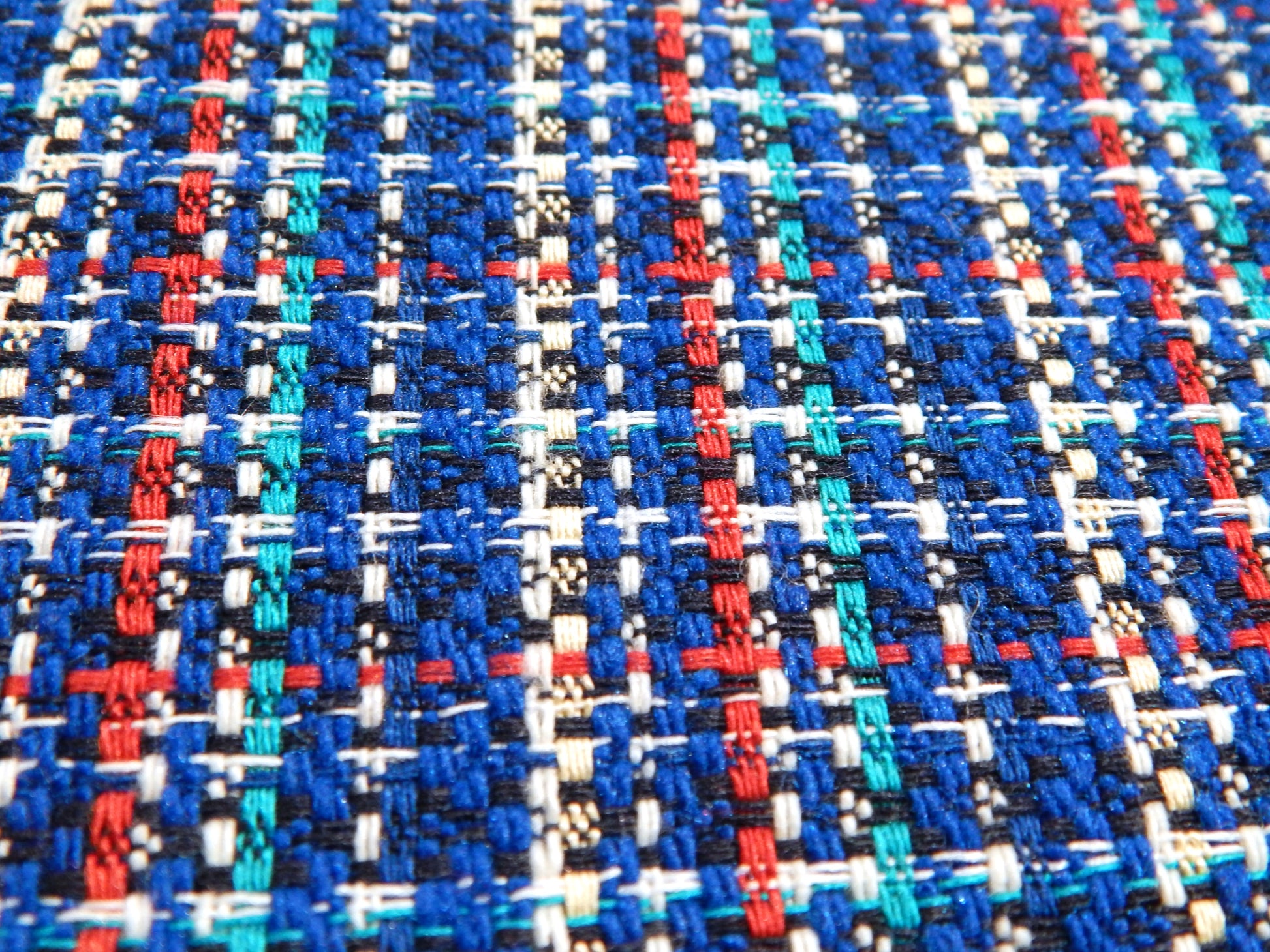 This Primary Hued Tweed Fabric is a wonderful blend of fibers and colors. A mixture of wool, cotton, and polyester; this fabric will wear well, provide warmth, and be machine washable! (Yay!) The bright cobalt blue catches your eye easily, and the other reds and yellow woven in will help it match anything. This fabric is midweight and slightly drapey, and the weave is a little tighter than our other tweeds/boucles and will not be so prone to getting pulls and runs. Use this fabric for a fun new jacket like the Style Arc Delphine, mini skirt, or even handbag.