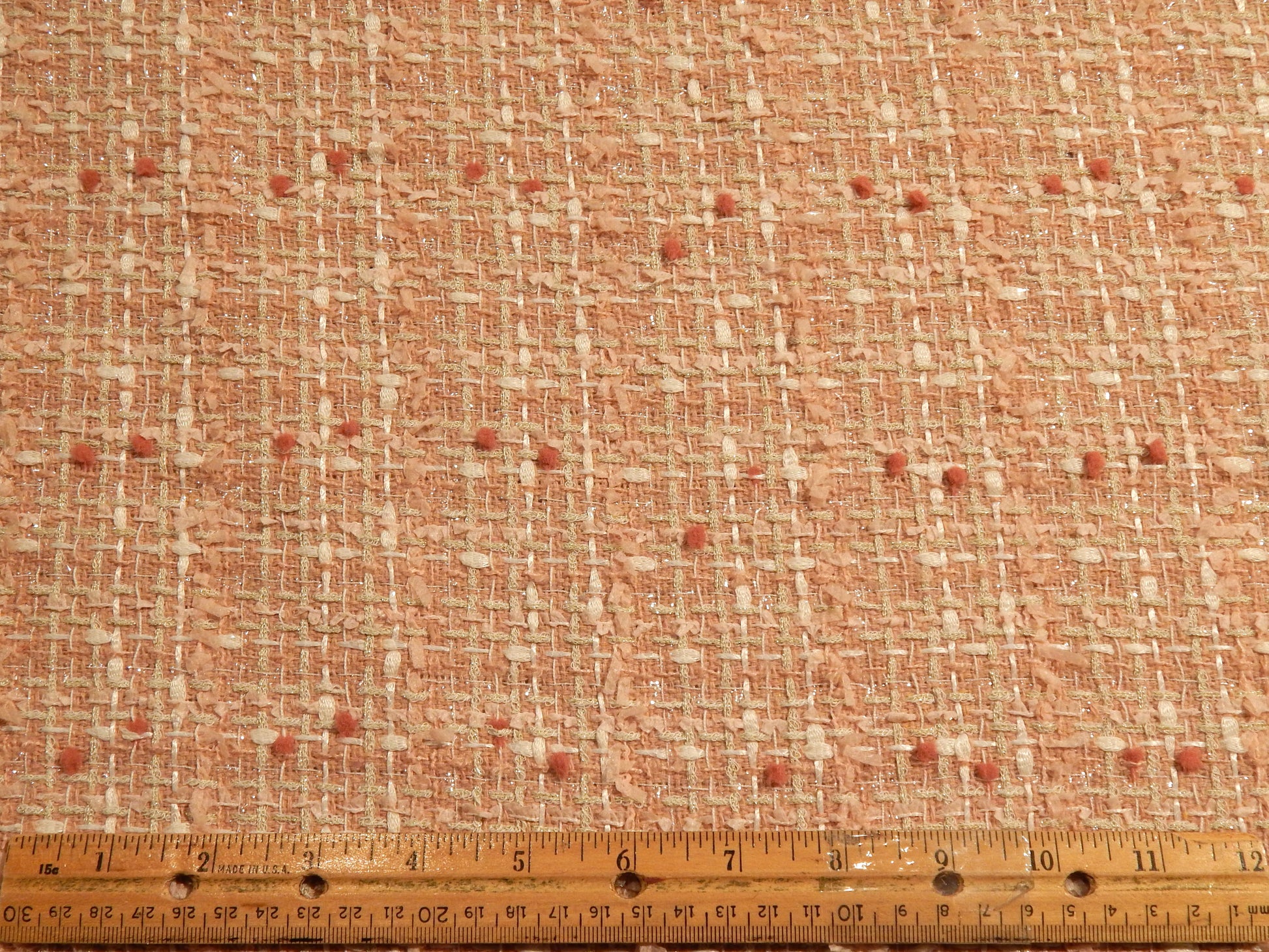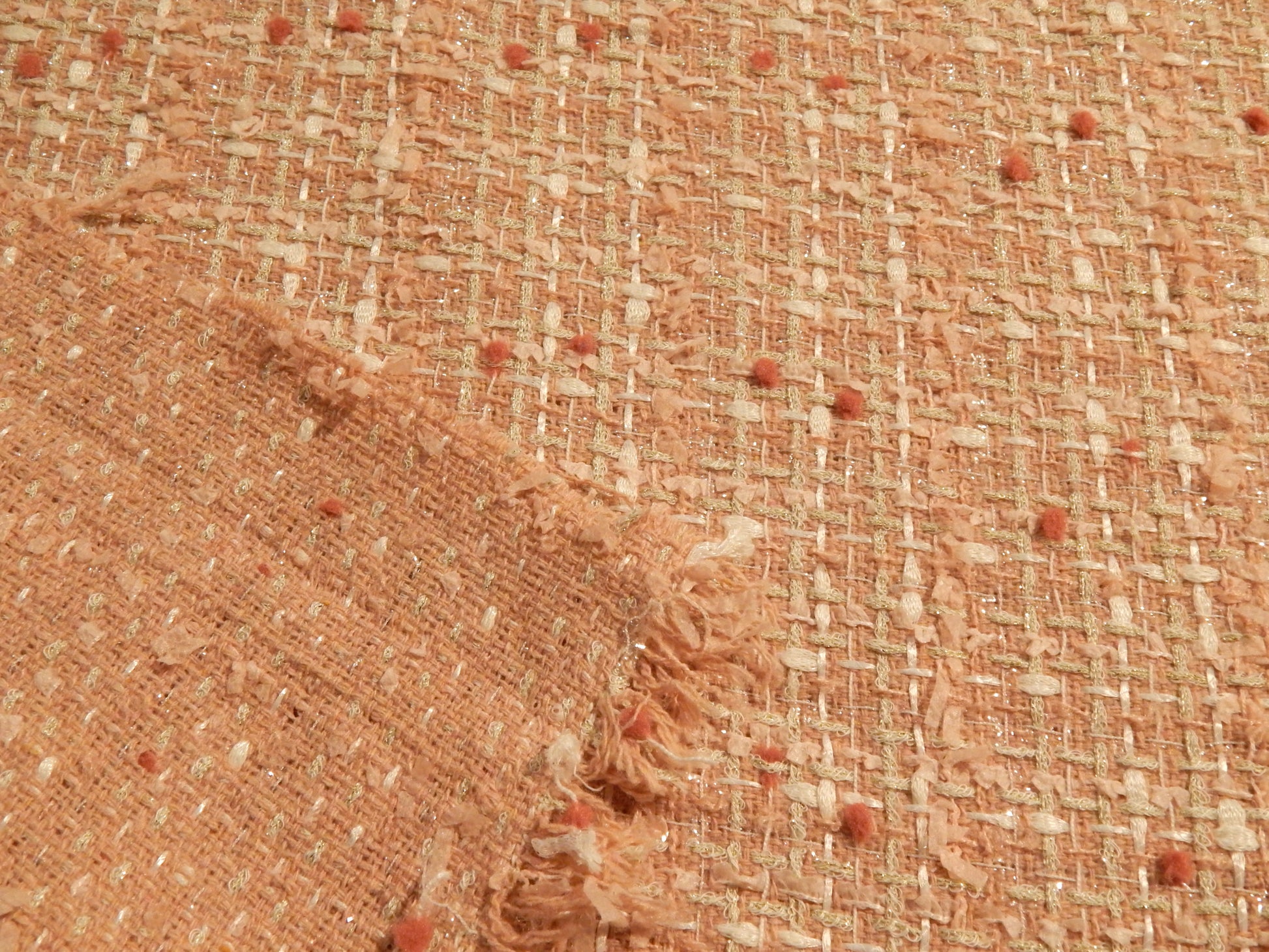 This Soft Pink Barbie Tweed has such a beautiful texture and is a beautiful suiting or dress fabric. It is a midweight fabric that has been woven with interesting yarns that give it a fringe like texture and speckle it with dots of darker pink. Since it is a looser weave it would do best to be quilted to a lining or underlining to keep it from running, just like Chanel jackets are. Use this fabric for a fun new jacket like the Style Arc Delphine, mini skirt, or even handbag.