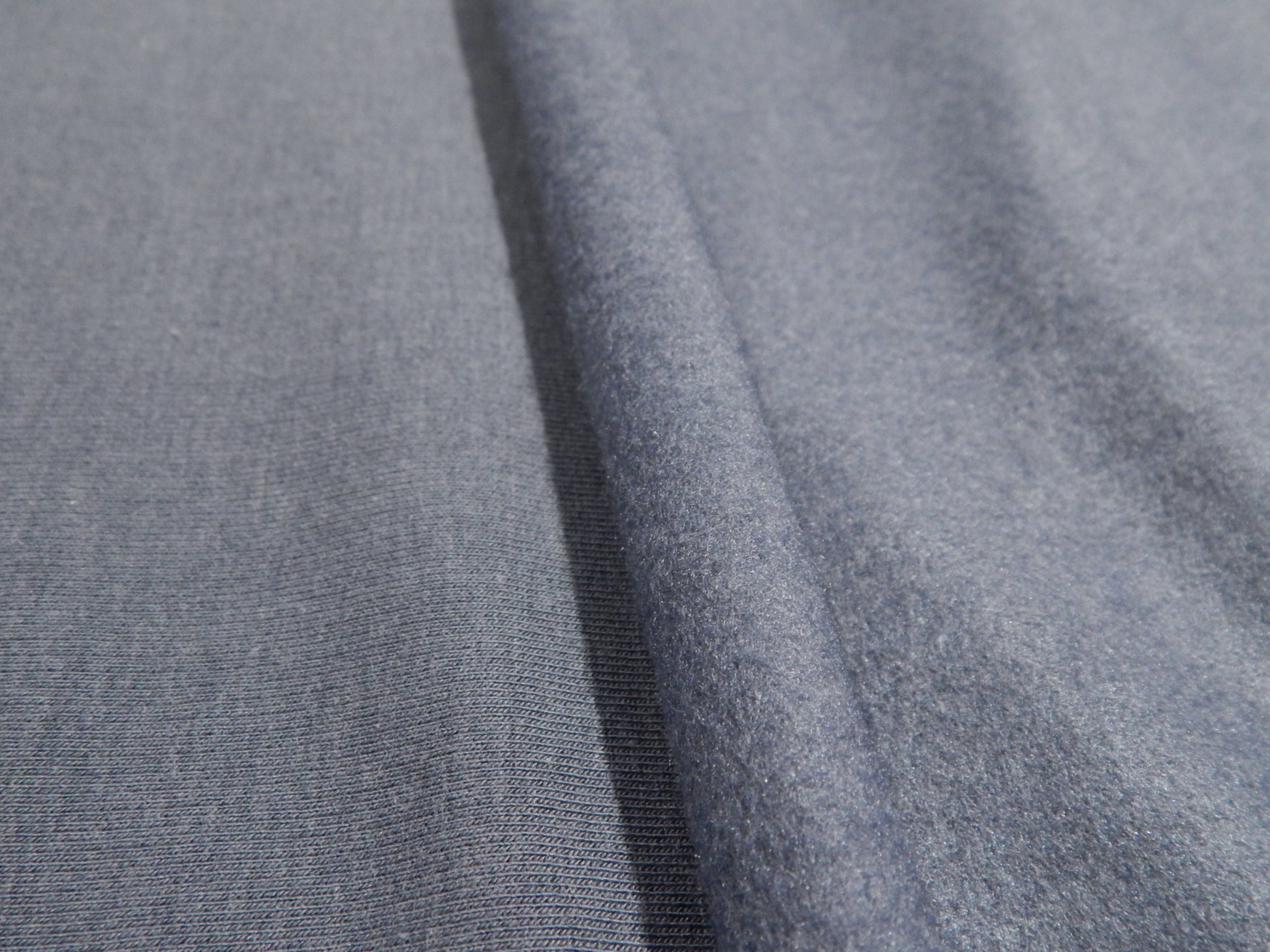 If you're planning on sewing up a sweatshirt or sweat suit anytime soon, then this is the fabric you want. It is thick, super soft, and stretchy (but not so stretchy that it'll droop). It is smoothly knitted on one side of the fabric, and the flip side is brushed. Since it is a bamboo and cotton blend, this fabric will only keep getting softer after every wash.