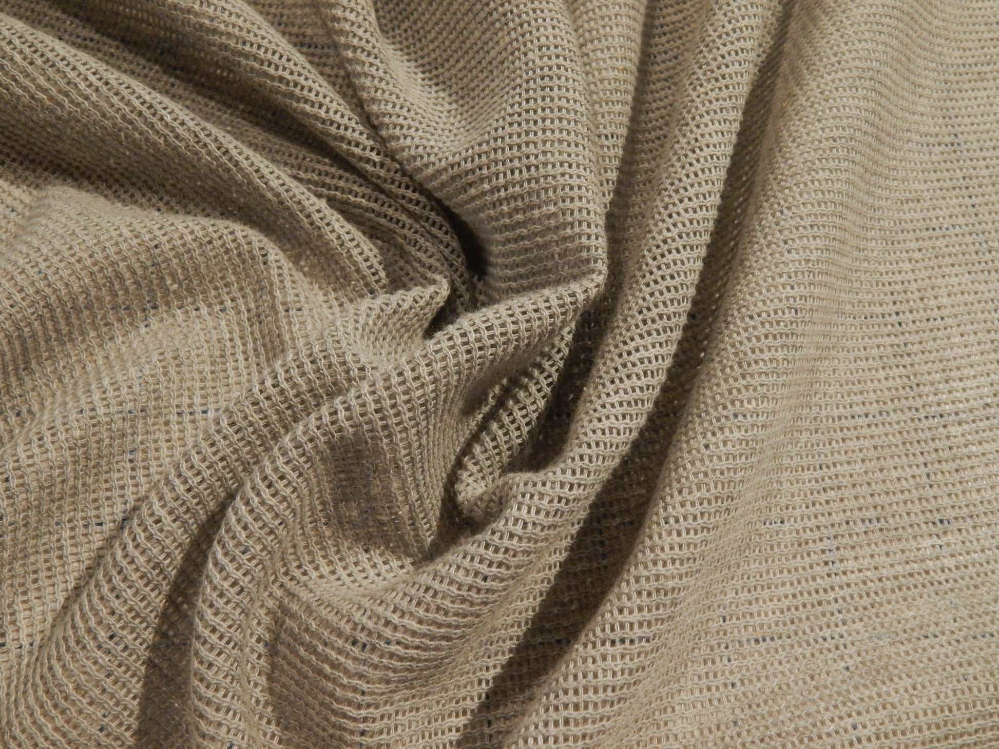 This Stone Grey Sailors Cotton Mesh is a super interesting cotton mesh. The mesh pattern forms a small grided pattern that has slight mechanical stretch. This fabric does not have enough stretch to be treated as a knit, even though it's a mesh, and should be used as a woven. Be creative with this fabric and make a unique top, dress, or costume!