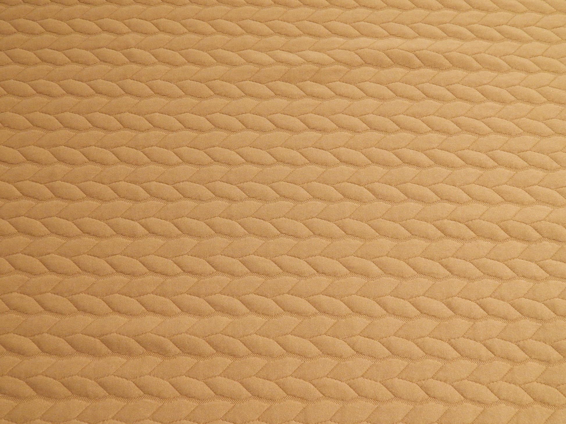 This Taupe Quilted Cable Double Knit is a wonderfully thick fabric great for making an easy to sew sweater! It looks like a quilted blanket, but is actually a stretchy knit! This knit is stable and easy to sew with and has a nice body to it. With a two way stretch it'll work well for more stable garments. This would make a great sweatshirt, sweater vest, or preppy skirt!