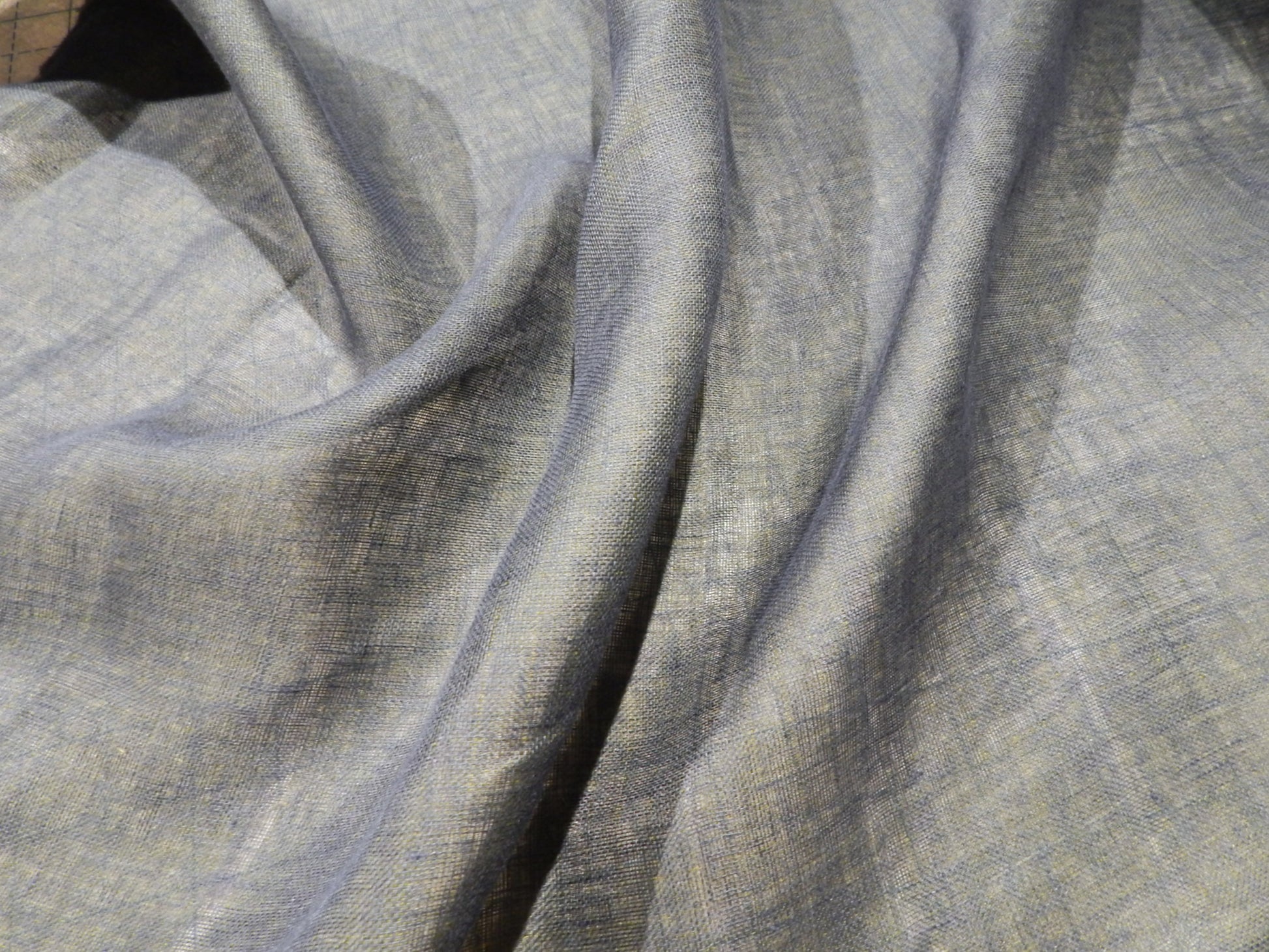 This super unique Two Faced Blue/Green Linen Gauze is a magic show in fabric form! One side looks completely green, and the other side looks totally blue! The secret is in the weaving, if you look super closely there are two wefts woven together similar to a double gauze. This would be a wonderful fabric for a reversible garment or one with flounces that will show off it's "magical" properties!