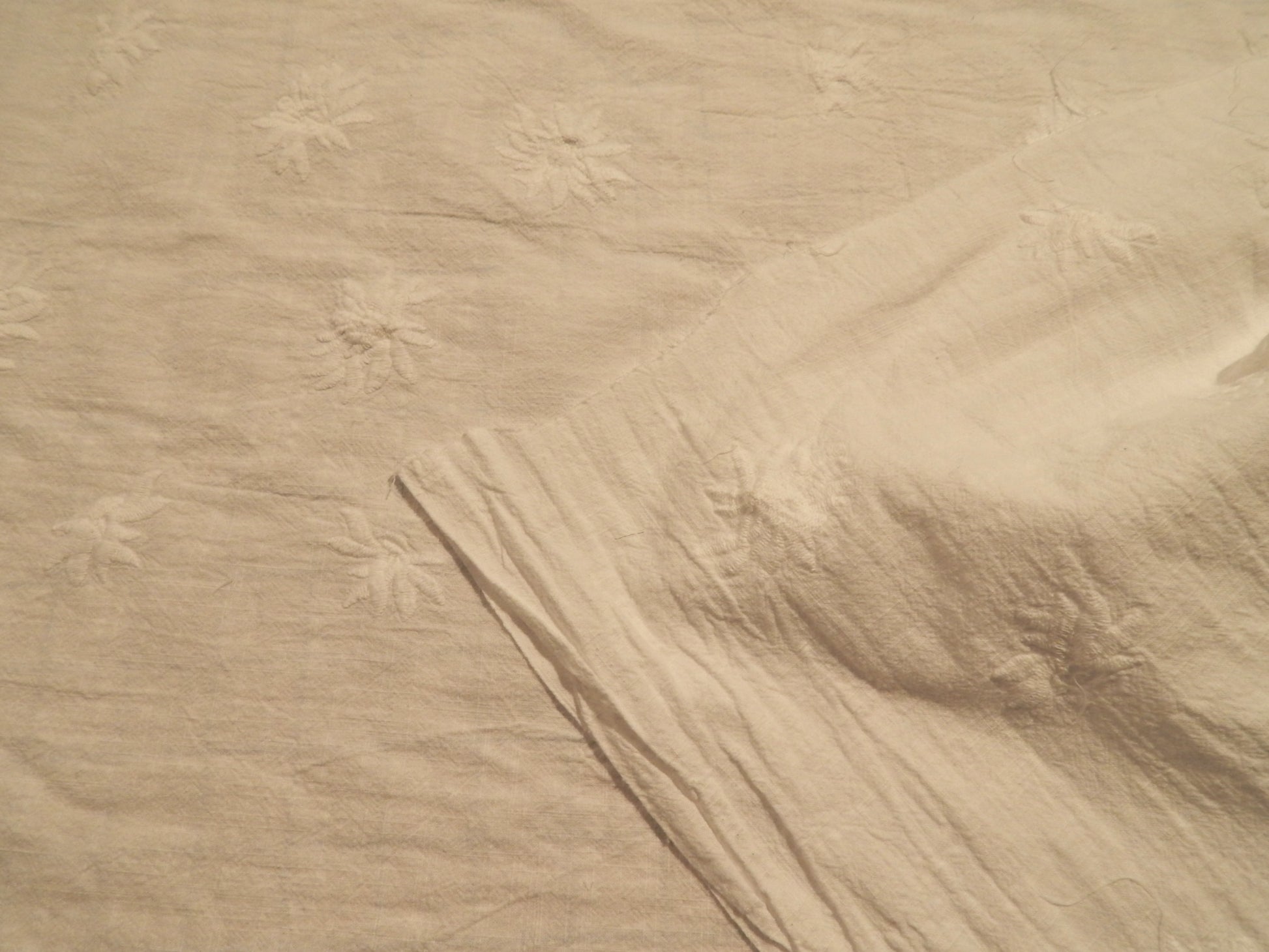 White Floral Embroidery Linen/Cotton Blend