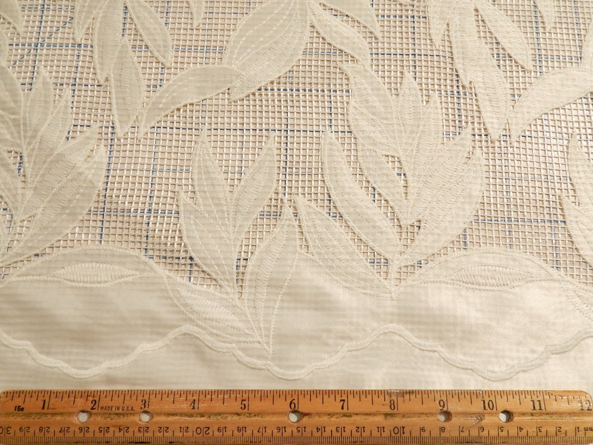 - 59/50" Wide (The mesh is 59" wide and the embroidered regions measure 50" wide)